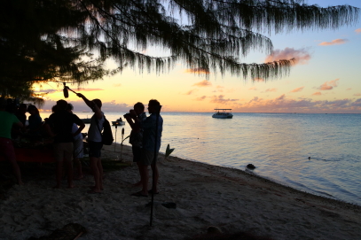 The BBC crew for ‘Amazing hotels: Life behind the lobby’ filming the ahima’a with baby black tipped reef sharks hoping to join in