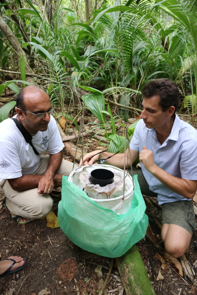 Hervé Bossin (Institut Louis Malardé) explaining the use of mosquito traps to monitor the effectiveness of a successful eradication program on Onetahi.