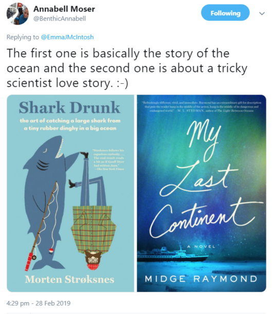 - Morten Strøksnes: Shark drunk: The art of catching a large shark from a tiny rubber dinghy in a big ocean